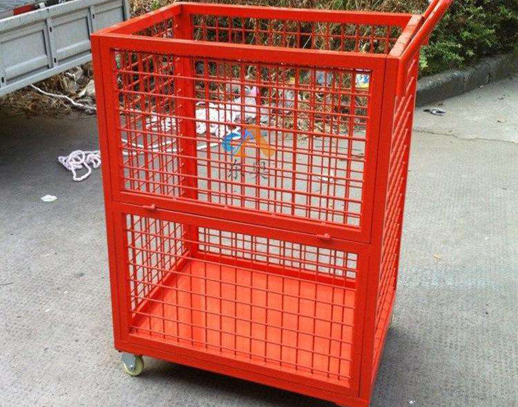 工业仓储笼是仓储运输中不可缺少的设备,不但在仓储中被广泛应用,在运输中也受到很多客户的青睐。工业仓储笼坚固耐用、运输便捷、能重复使用,能有效降低仓储企业的人力消耗及包装成本。工业仓储笼常用的有三种:一种是安装脚轮手推移动工业仓储笼用来周转用的,二种是带脚仓储笼可以堆起可以上架,三种是带轮带脚的仓储笼可以两用。 随着现代工业的迅速发展,对仓储笼的功能要求也越来越高。将工业仓储笼底部安装轮子,仓储笼之间便可连接,且方便移动,移动时声音小,折叠后可堆垛、可靠安全而且保护产品免磕碰,工厂内部周转极其方便。经过改进的脚轮手推移动工业仓储笼可在车间方便快捷周转,更可在笼子上装上牵引,前面附牵引机械,使笼子之间连接起来如一列小火车自由穿梭于仓库厂房之间。 脚轮手推移动工业仓储笼和可折叠敞口式仓储笼蝴蝶笼都是采用Q195高线作为原材料,一般丝径是4.8mm、 5mm、 6mm、6.4mm。网片焊接的网目间距一般为50*100,100*100,50*50、50*25、25x*25。仓储笼底部采用U型槽钢焊接而成,U型槽钢是冷轧带钢轧机轧制而成,底部四脚采用冲压件冲压成型,一般成型片为2片冲压件,然后2片冲压件焊接而成。 仓储笼常用规格是:1200*1000或1000*800的,其它规格可以定做,仓储笼的脚高一般为100,也有120mm高度的,在制作成网片后,可采用镀锌或喷塑进行表面处理(仓储笼大多数采用镀锌处理),表面处理完毕后就可以进行组装,最后制作成成品。仓储笼的优点包括但不限于以下几点: 1、采用国际标准,可与集装箱配套使用,有效提高空间利用率,配合叉车、地牛、升降机、吊车等设备可进行高效作业。 2、可互相堆叠四层高,实现立体化存储,环保处理,卫生免疫、周转、存放回收均不污染环境。 3、折叠式结构,回收成本低,是实木木箱的替代产品。 4、规格统一,容量固定,存放货物一目了然,易于库存清点。 5、底部可安装轮子,仓储笼之间可连接,且方便移动,移动时声音小,折叠后可堆垛、可靠安全而且保护产品免磕碰,工厂内部周转极其方便。 6、采用优质钢材经冷轧硬化焊接而成,坚固耐用强度高装载能力大,表面镀锌美观抗氧化使用寿命长,运输便捷重复使用能有效降低仓储企业的人力消耗及包装成本。
